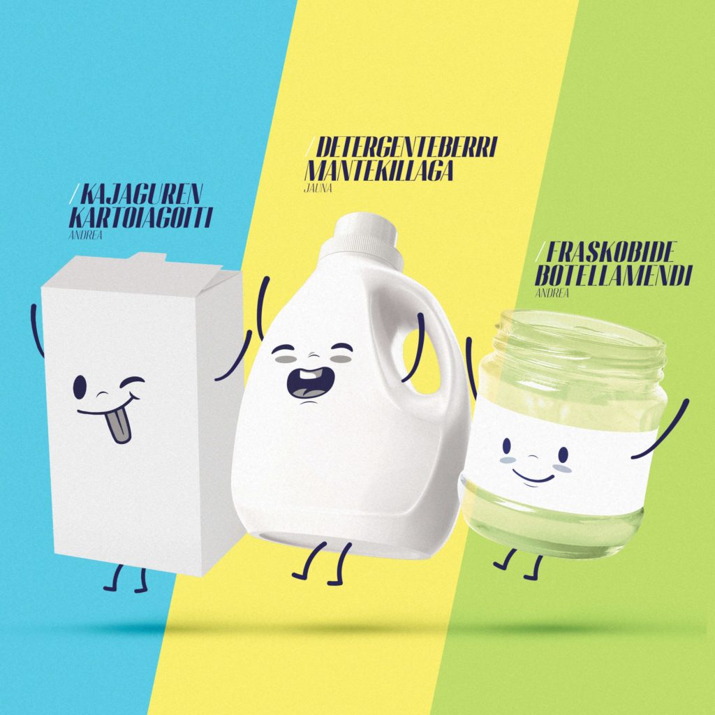 Para representar estas segundas vidas, se ha dado vida, literalmente, a una serie de familias de envases, que hablan, cantan y agradecen que se recicle tanto en Euskadi; están a la cabeza en toneladas recicladas, según los últimos datos.